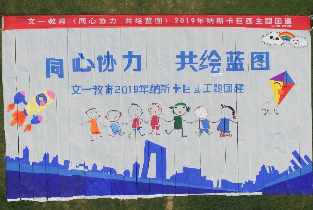 中午稍适休息,分享过丰盛的生态营养午餐,很快便迎来了本次活动的最高潮。文一教育近200位老师,将共同完成“同心协力,共绘蓝图”的纳斯卡巨画。整个纳斯卡巨画共计144平方米,由24段长达12米的画布共同组成,艰巨和困难的任务,正激发了全体文一教育老师空前的斗志和团队凝聚力。