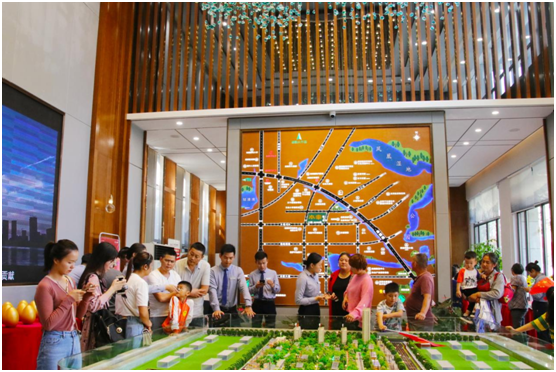 外场演绎接近尾声,现场嘉宾迫不及待涌入营销中心,精致的沙盘和区位图,阔绰的挑高大堂、奢华的水晶吊灯、精美的布局格调、极致考究的装饰,引得来宾赞叹不已。