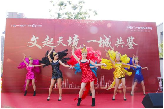 一支激情四射的桑巴舞拉开活动序幕,文一地产皖北区域公司副总经理刘从清及文一·名门云栖天境项目相关领导带着美好祝愿,共同出席剪彩仪式,恭迎八方来宾。无数来访者争相上前,只为一睹营销中心精致真容,共鉴项目的独特魅力。
