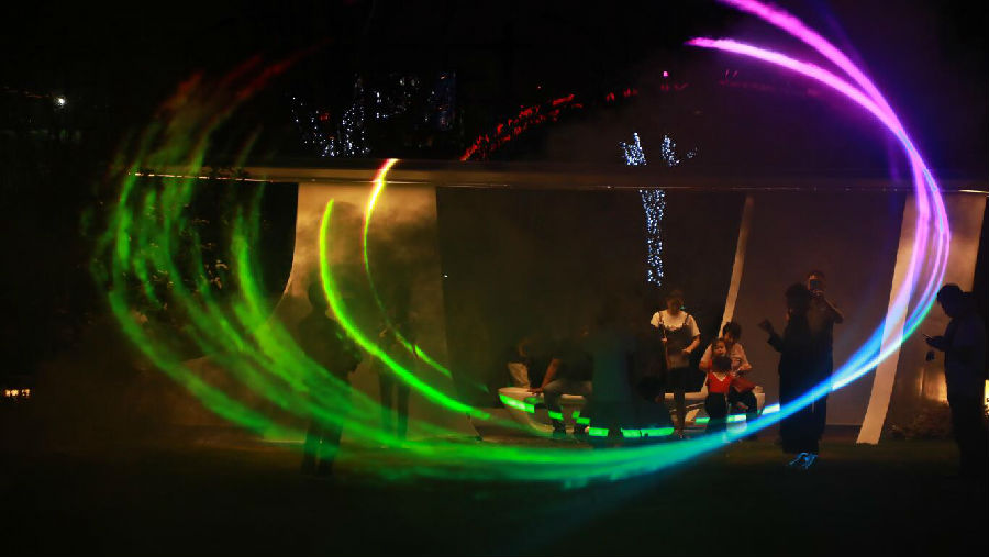 在这个美好的初秋夜晚,闺蜜、情侣、家人在光影节现场拍照游玩,共享此刻璀璨流光的盛宴,时光在这里定格,幸福在这里蔓延。