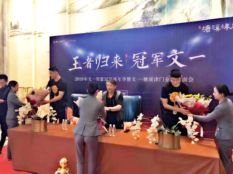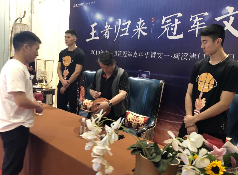 20日当天,文一男篮带着冠军荣光抵达文一·塘溪津门,为广大津门球迷们带来一场专属的篮球饕餮盛宴。见面会还未开始,活动现场已座无虚席,来宾们为零距离感受文一男篮冠军的“强大气场”与“王者风范”而翘首以待。