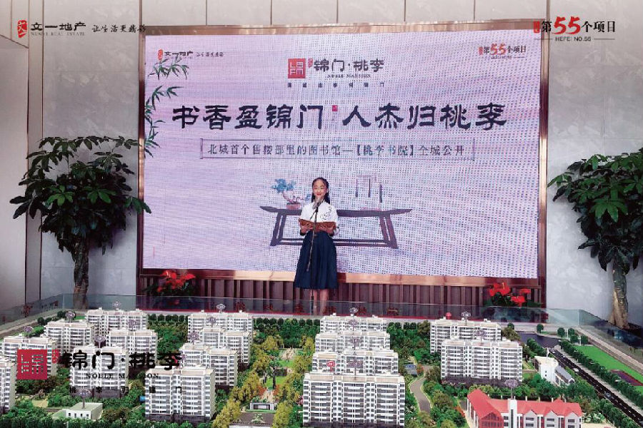 在主持人引导下,韦继松上台致辞:“【桃李书院】不仅代表北城首个售楼部内图书馆的开放,也是文一·锦门桃李作为书香学府,在人文配套建设上的一次创举,彰显文一地产作为本土房地产行业龙头企业,对传承弘扬优秀中国传统文化应有的担当和应尽的责任”。