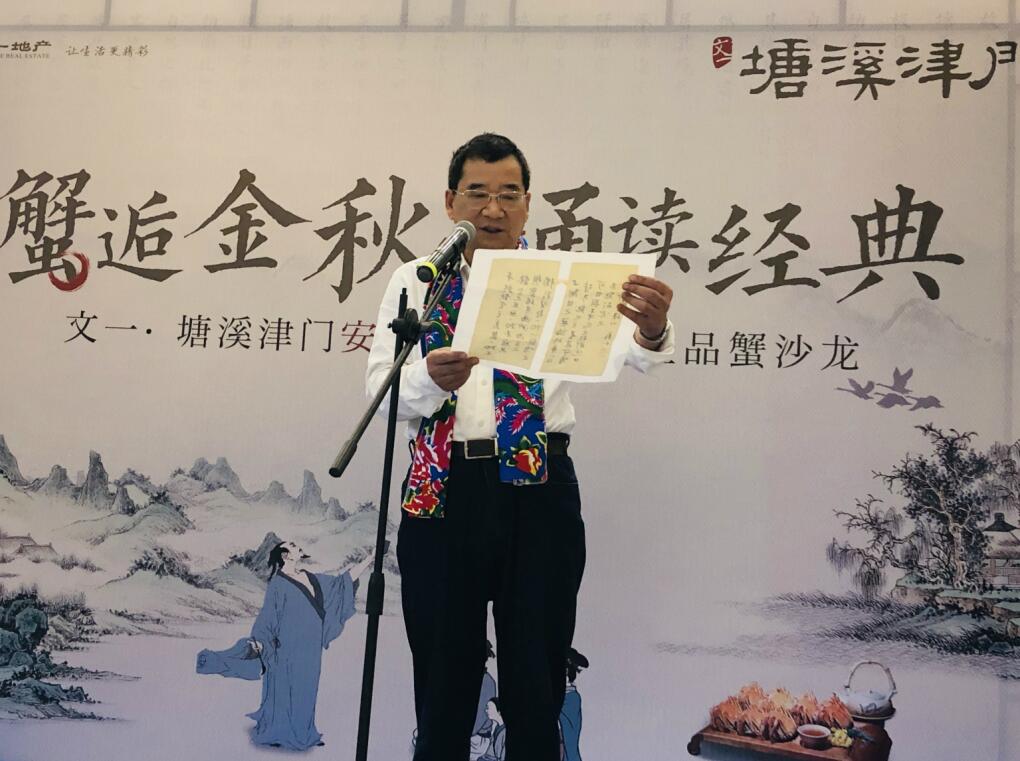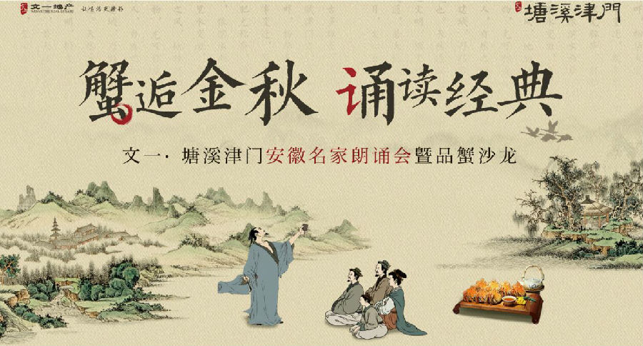 “湖田十月清霜堕,晚稻初香蟹如虎。”11月3日,文一·塘溪津门金秋蟹逅季再度启幕,安徽名家朗诵会暨品蟹沙龙于营销中心内盛大举行。众多知名作家、诗人、学者、艺术家及媒体人齐聚一堂,以朗诵之名,以“品蟹”为媒,观摩交流,共鉴古韵流芳。