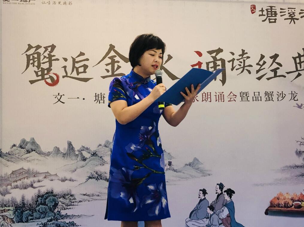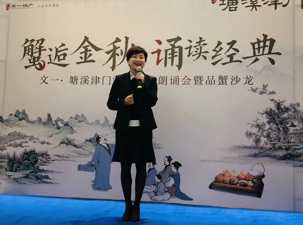 伴随着诗意古韵,文一集团副总裁薛英姿上台致辞:“诵读中华经典诗文,是传承中华文化、厚植时代思想的有益之举。文一作为安徽民企排头兵,将持续为传承徽皖文化,建设大湖名城贡献力量。塘溪津门对徽文化的领悟和现代演绎,亦是合肥独特城市文化标签所在,传承文化,歌咏经典,是塘溪津门的责任与价值。”