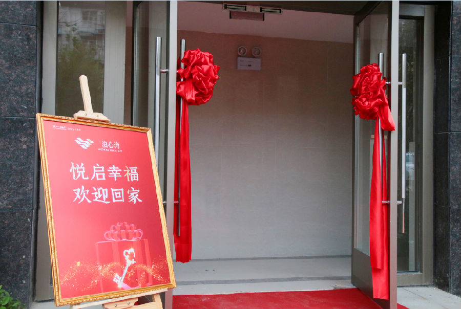 严寒深冬挡不住业主们归家的喜悦和热情。交房当天,泊心湾项目内经过精心布置和细心安排,处处洋溢着归家的温馨,“悦启幸福 欢迎回家”的桁架字样更为现场增添喜庆色彩。
