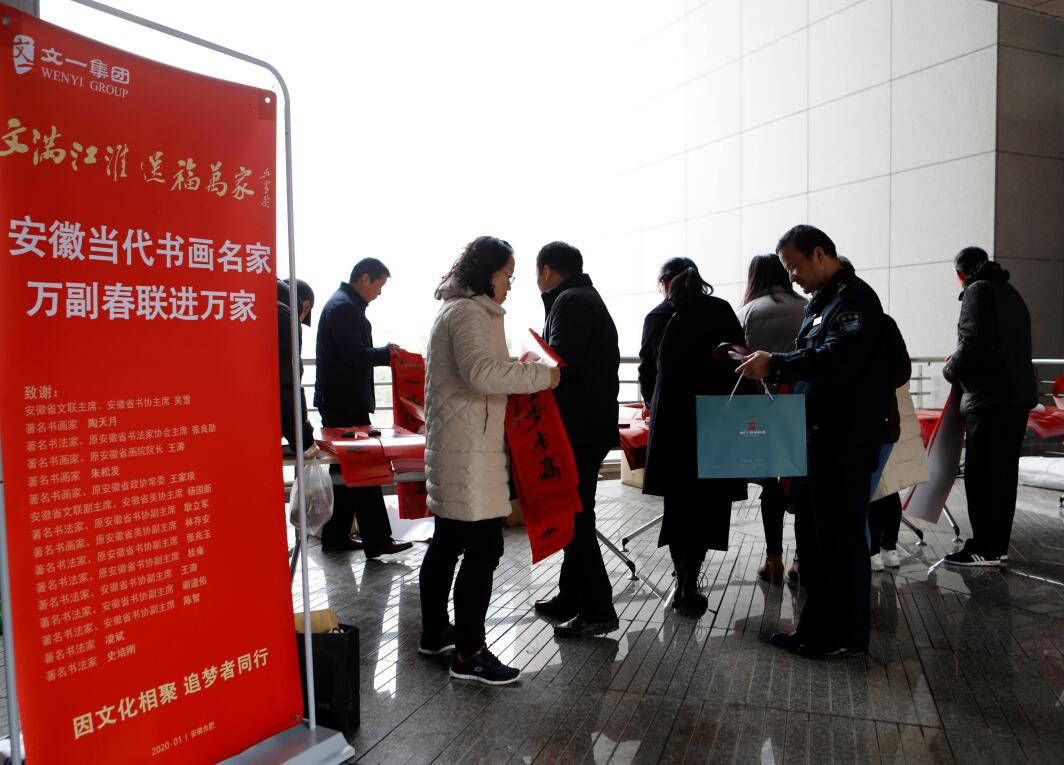 1月13日,由安徽日报报业集团主办,安徽省书法家协会、安徽报业文化创意有限公司、安徽日报书画院承办,文一集团总冠名的“文满江淮送福万家”安徽当代书画名家万副春联进万家活动走进合肥市政务中心,为机关职工们送去了一副副新春的祝福。