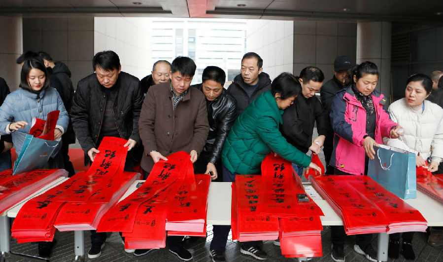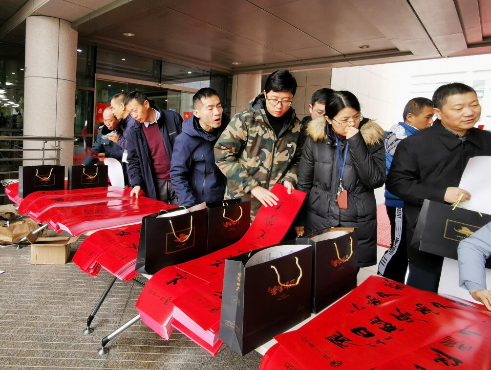 活动现场,一幅幅写满祝福的春联跃然于红纸之上,浓浓的情意、真诚的祝福溢于字里行间。前来领取春联的职工络绎不绝,职工们拿到满载祝愿的春联后个个喜笑颜开,脸上洋溢着高兴和满足之情,纷纷表示,虽然商店卖的春联金光闪闪、图案漂亮,但还是不如书法家们的春联更有年味和艺术价值。据悉,在短短的两个小时中,现场共送出约四千副春联。