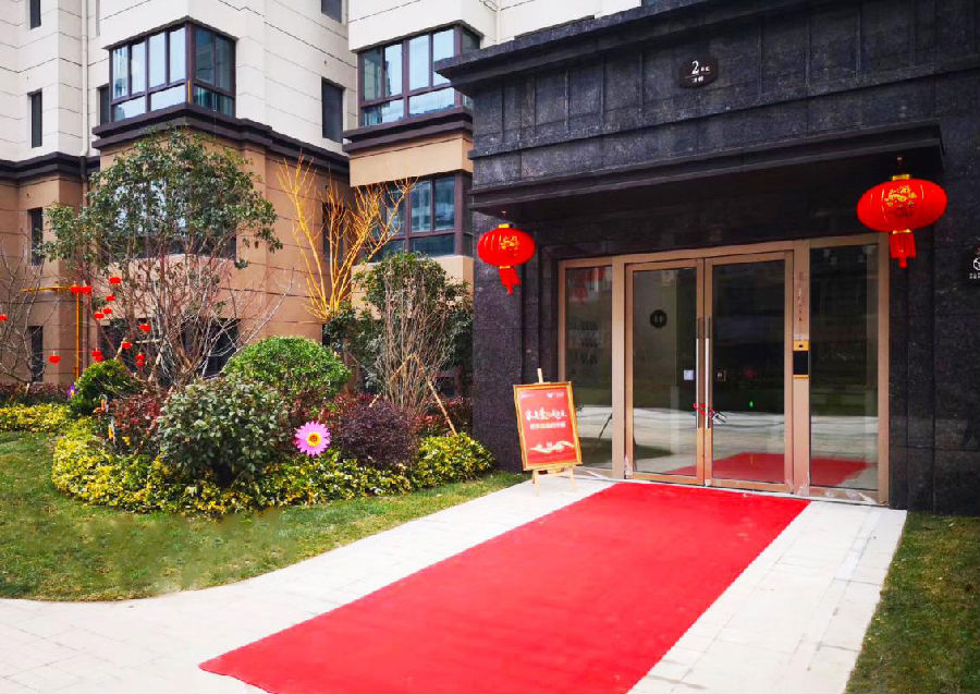 踏进文一·叶语湾小区,目之所及皆洋溢着归家的幸福。红色的地毯、温馨的迎宾花柱、七彩的风车、红红火火的新年宫灯、鹅毛细雪挂枝头,每个细节都透露着真诚与热情。