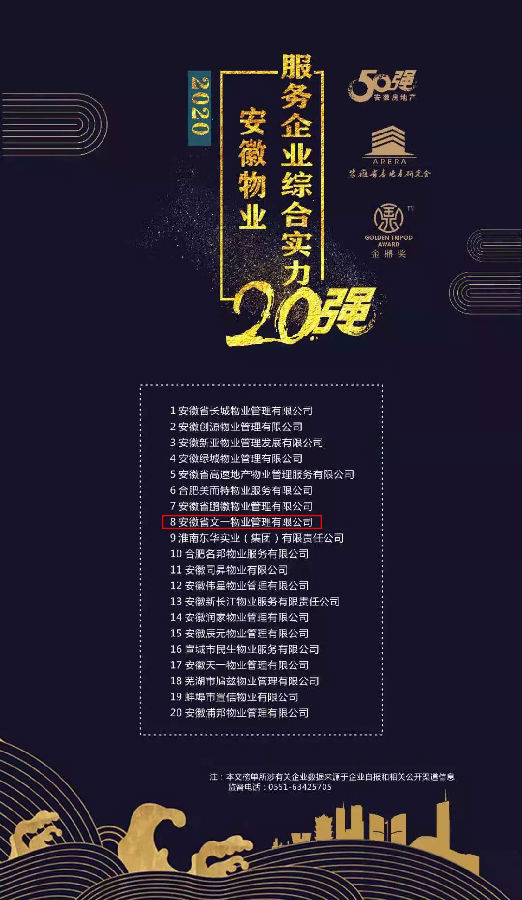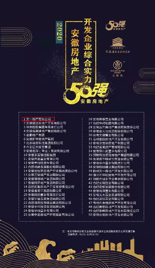 2月12日,安徽省房地产研究会重磅发布2020安徽省房地产行业综合实力50强暨第5届“金鼎奖”榜单。文一地产荣登2020安徽省房地产行业综合实力50强榜首,文一物业荣获2020安徽物业服务企业综合实力TOP10,文一·塘溪津门荣膺2020安徽房地产品质服务典范楼盘之首。