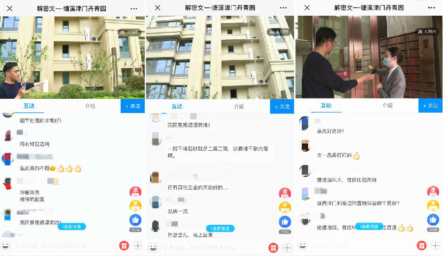 耳听为虚,眼见为实。此次线上直播游园,实地探访塘溪津门吸引近5万观众在线观看,其中包括数十家权威媒体人及行业专家,通过无滤镜实拍、无剪辑直播直观展示塘溪津门的品质实力和服务水准,收获广大业主、精准客户群及主流媒体的一致好评。直播过程中还穿插三轮抽奖,观众们积极抢答互动,屡屡将直播间热度引向高潮,一如春日湖园、一如塘溪津门充满活力,朝气蓬勃,未来可期。