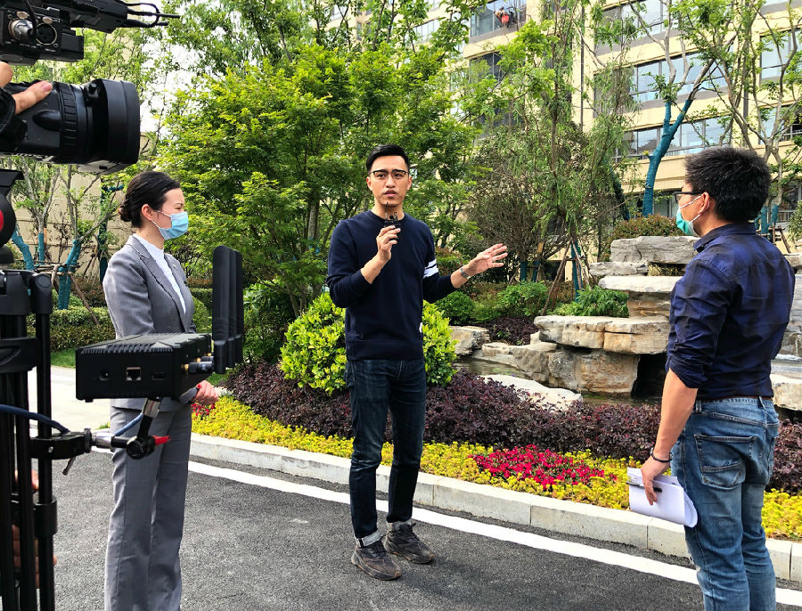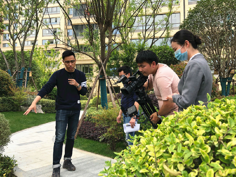 离开洋房后,在园区路上直播组一行遇到了正在指导工作的物业经理,黄经理通过直播镜头告诉观众,目前文一滨江物业与万科睿服务联手,未来将围绕塘溪津门打造专属尊贵服务,以三大服务为主:包含细心的管家服务、专业的秩序维护团队、严密的工程设备维护标准。而我们眼前正在工作的物业绿化团队及令人耳目一新的五重绿化景观,正饱含着文一为业主打造园林社区的决心。