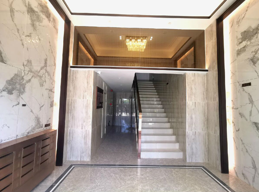 听了业主的介绍,大城决定跟着置业顾问去看看塘溪津门的品质洋房。走近一楼大门,置业顾问介绍,塘溪津门的“智能门锁”除刷卡外,还可通过人脸识别解锁,主要考虑方便业主的日常进出。进入大厅内,水晶灯莹莹照亮,一楼公示栏上贴着专属物业管家的联系方式,为业主提供贴心的专属服务。
