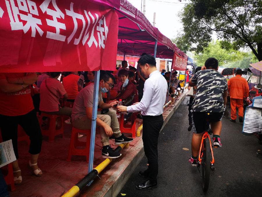恶劣天气之下,文一地产各项目爱心助考的工作人员们克服暴雨带来的不便与困难,用实际行动服务中考,为广大考生和家长们们送去一份份清凉与温情。