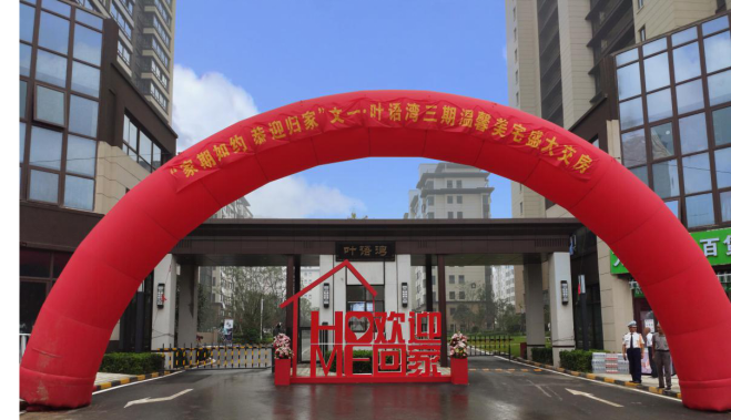 为了迎接业主的到来,项目全体工作人员预先做足准备,人员全部就位,确保业主能顺利办理收房手续。园区入口设置了迎宾彩虹门,保洁阿姨们早早清理干净园区道路,让归家之路更加舒心。每栋单元门处更是布置了红地毯、红灯笼、红绣球等喜庆元素,处处显示出文一的贴心服务。