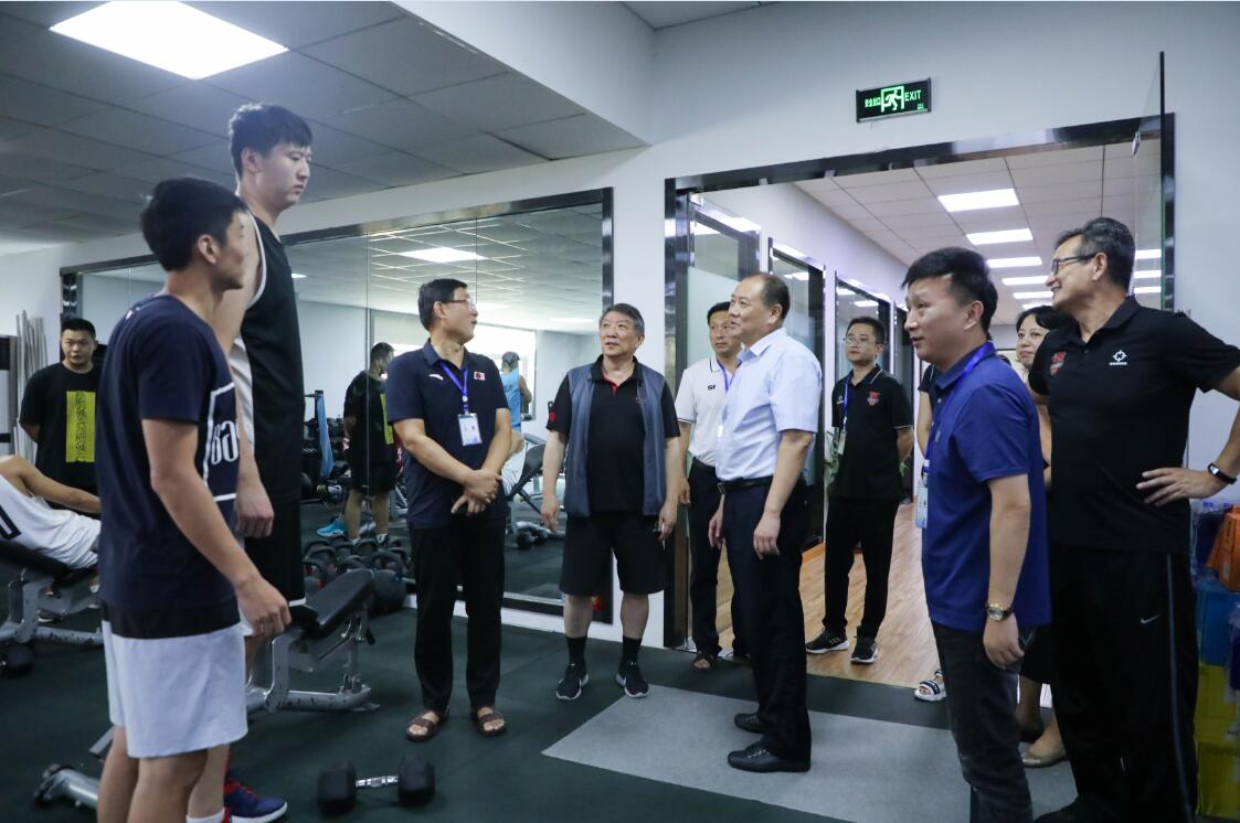 在安徽文一体能总教练王卫星的指导下,文一青年队队员们正在体能训练室里挥汗如雨。推门进来后,李军目光便被队内五个身高超出210公分的球员吸引住了,逐一询问他们基本情况后,李军勉励小伙子们刻苦训练,力争为安徽篮球取得优异成绩。随后,李军主持召开座谈会,周文锁和宫鲁鸣代表俱乐部汇报了两支队伍的备战情况。文一男篮一队正在为即将到来的2020年NBL联赛做着最后的准备。全新组队的文一青年队日前已经向安徽省体育局提交了代表安徽参加U19男篮全运会比赛的申请报告,目前接近30名球员正在展开集中备战,虽然时间紧任务重,但会全力以赴力争发挥出最好水平。