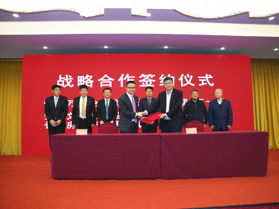 (文一集团副董事长韦勇(右)、烟台万科有限公司总经理王一川(左)分别代表双方签署战略协议)