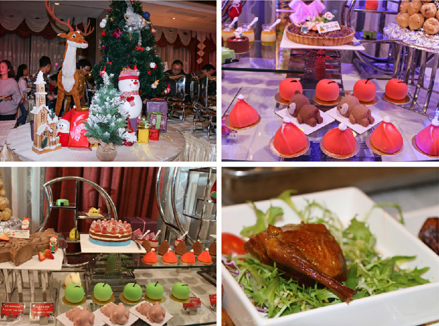 晚会现场布置的温馨浪漫,麋鹿、雪花、圣诞老人等节日元素装饰全场,灯光流转,乐曲萦绕,加之精美餐食和主题甜点丰盛诱人,令来宾犹如身处一场圣诞主题派对,轻松之余更添愉悦。