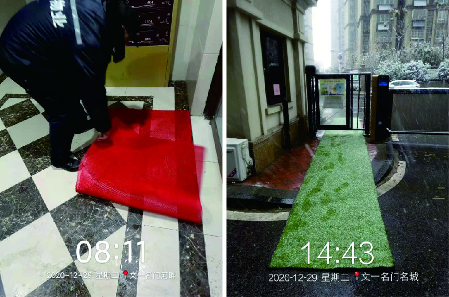 2020年12月29日,合肥地区迎来了降雪天气,气温骤降,寒气逼人的天气没有影响负有责任心的文一物业员工,他们及时除雪,铺上地垫、撒上工业盐,贴心为业主服务,不畏大雪湿透衣衫,化身成为风雪中坚守的最美“身影”。