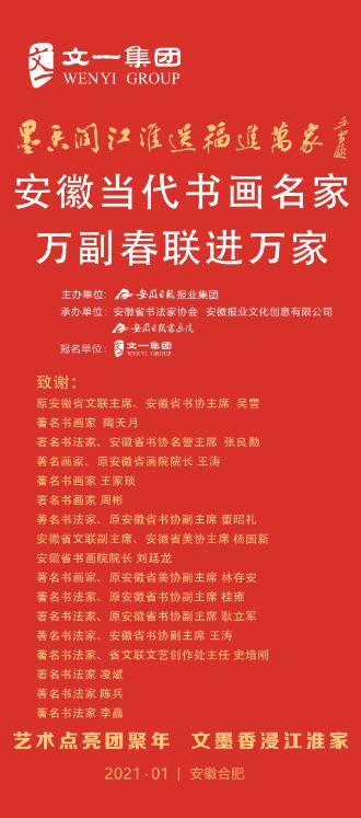 作为安徽省经济文化建设重要参与力量,文一集团已连续两年冠名支持此项活动,希望通过书法大家的艺术作品,把有品位、有年味的文化‘年货’送进千家万户,丰富大家的文化生活,传递新春的祝福,营造更美好的节庆氛围。接下来,在中国人最重要的传统节日春节到来之际,文一集团将继续以惠民为着力点,跟随主办方一起以送春联的形式,进一步服务市民,为更多家庭的美好生活增光添彩。