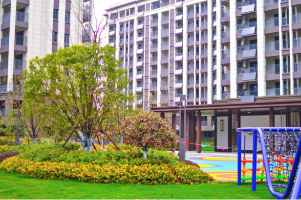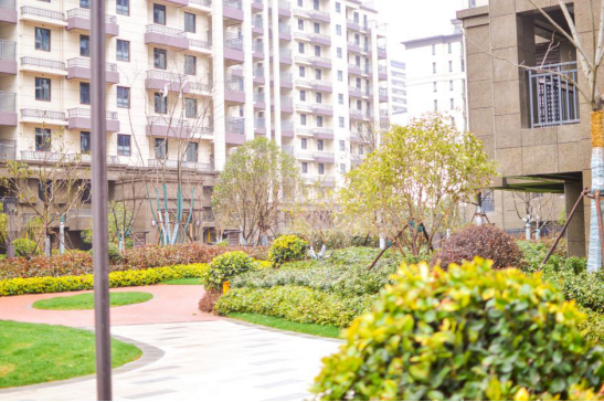 走入园区,建筑规划整齐有序,新中式景观及建筑与绿化组团和谐相生,乔木、灌木错落有致,一处一景,四季不同,绵延不断。同时,在物业工作人员的精心养护下,园区整体呈现出一片生机勃勃的景象。