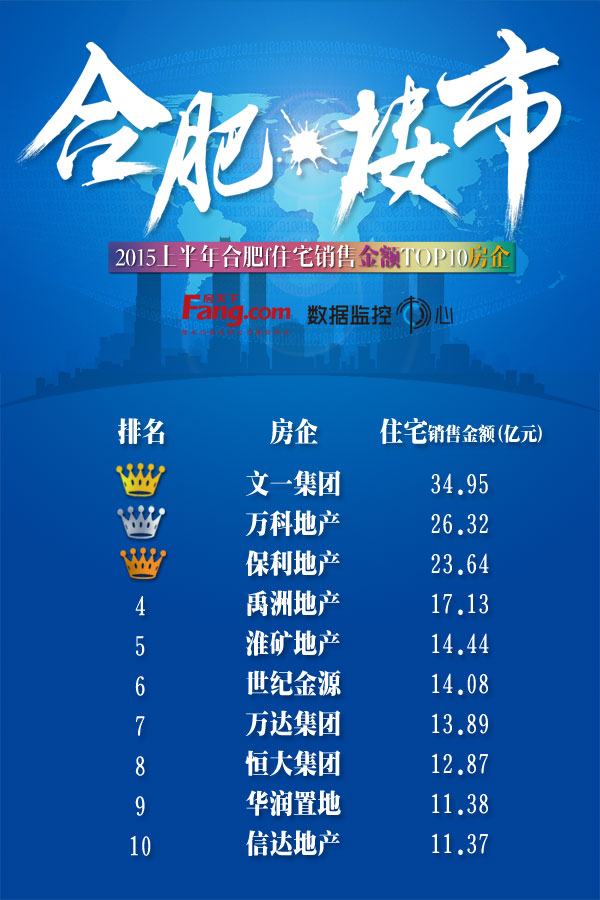 《2015年合肥楼市白皮书之“跑量榜”》日前正式出炉,文一地产以34.95亿元的销售额占据2015年上半年合肥房屋住宅销售金额TOP10第一名。其中,文一·名门北郡在合肥北部销售金额排名第二;文一·名门湖畔取得庐阳区销售额第三名;文一·名门首府取得政务区销售金额排名第三名。