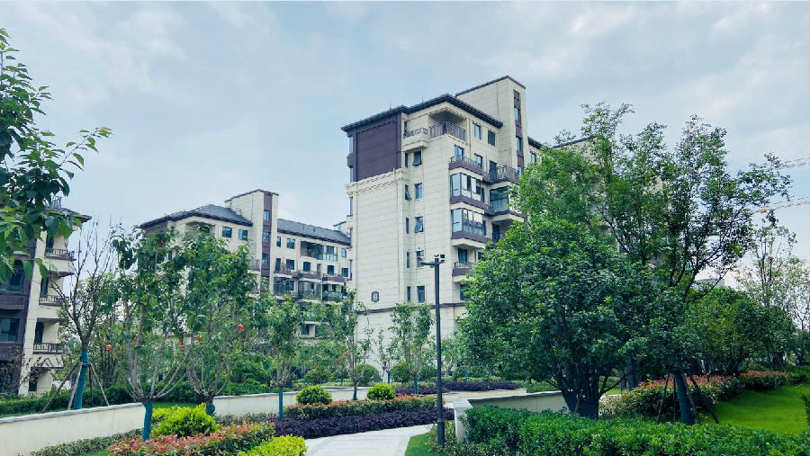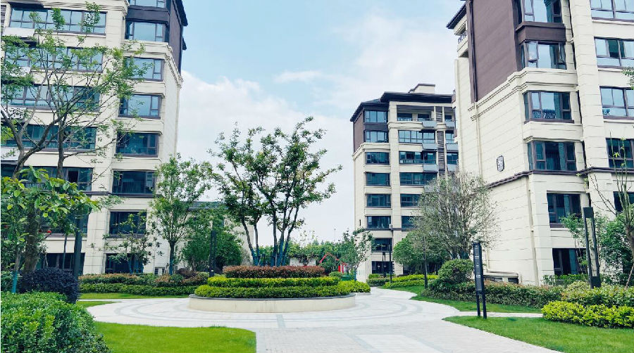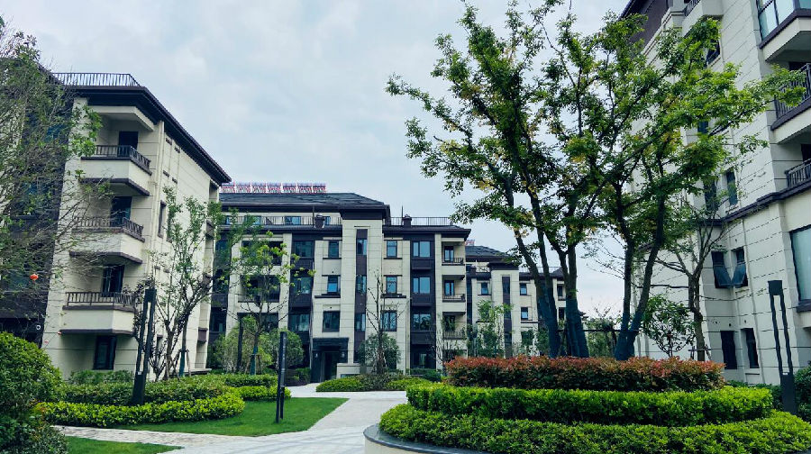 园区内部,楼栋错落有致,以纯正的新中式建筑风格与山居宜居元素相融合,整体外立面以米黄色、暗红色为基调,雄伟中不失轻盈,活泼中又不失大气,一砖一瓦体现品质。
