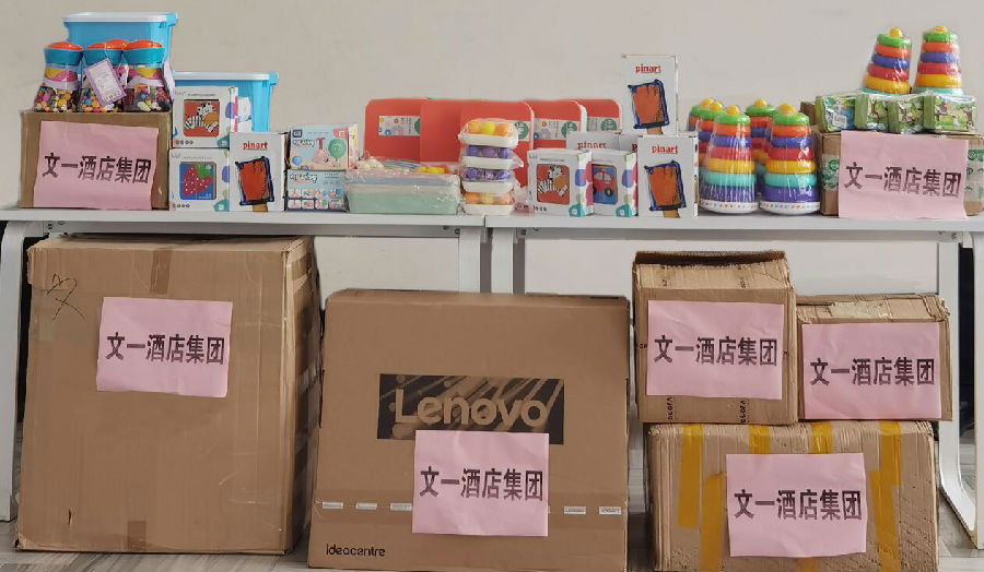 本次慰问活动中,文一酒店集团根据康复中心的需要,捐助了总价值7000余元的教具和一台教学电脑,购置慰问品的善款全部来自酒店集团员工自发捐赠。秉承文一集团“砖瓦精神、贡献社会”的企业使命,酒店集团始终将履行社会责任作为经营发展的重要组成部分,多年来持续通过捐助、慰问等活动,传递温暖正能量。2019年,酒店集团捐赠一部价值超5000元的儿童滑梯至康复中心,并设立了“星星的孩子”专项资金,持续带给康复中心的孩子们关爱与帮助。