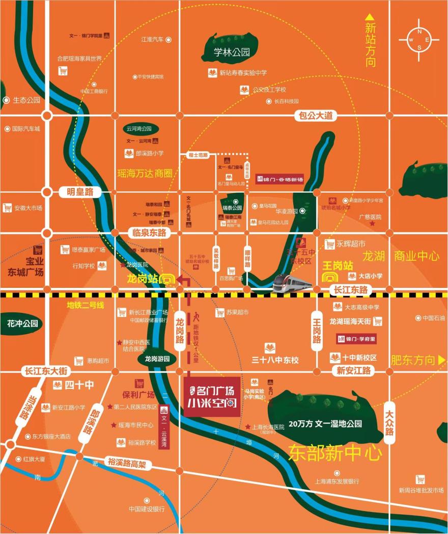 文一·名门广场小米空间地处合肥东部新中心核心位置,是文一地产布局合肥瑶海东部新中心的名门系列作品。项目紧邻2号线,与周边的龙岗路、新安江路等重点道路形成“三纵四横”立体交通网,处于瑶海万达广场、龙湖商业中心核心位置,同时,周边有龙岗游园、文一湿地公园等生态资源环绕加持,帷幄繁华城市,树立引领都市CBD风向。