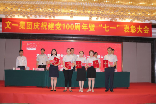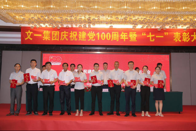 6月26日上午,文一集团党委隆重召开庆祝建党100周年暨“七一”表彰大会,回顾建党百年历程,表彰先进典型。集团党委班子成员、党员高管、各支部全体党员、入党积极分子等200余人参加会议。会议由集团党委副书记沙先知主持。