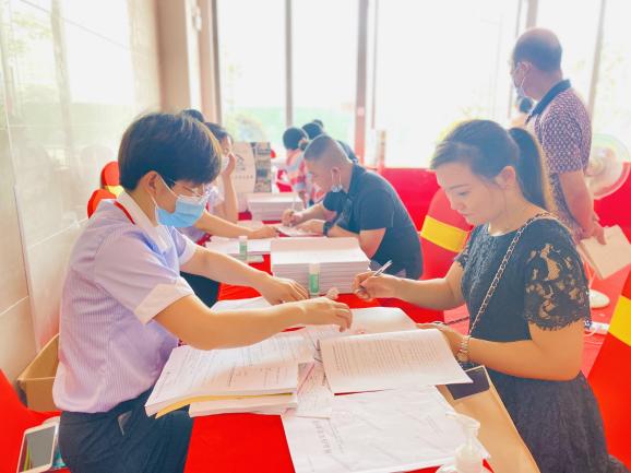 炎热的天气挡不住业主交房的热情,交房当天迎来了400余户业主收房,共同见证这一幸福时刻。业主在工作人员的引导下,有条不紊地完成收取资料、办证缴费、发放钥匙、带领验房等流程,整个交房手续办理,快捷高效。