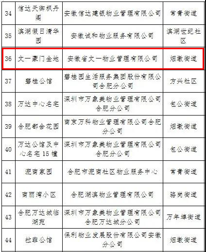 7月18日,2021年包河区第二季度住宅小区物业服务测评结果公布。文一滨江物业所辖多个小区跻身测评榜单前列,其中文一·塘溪津门物业跻身测评榜第26名,文一·豪门金地、名门湖语小区跻身排名前列,物业管理工作获得上级主管部门认可。