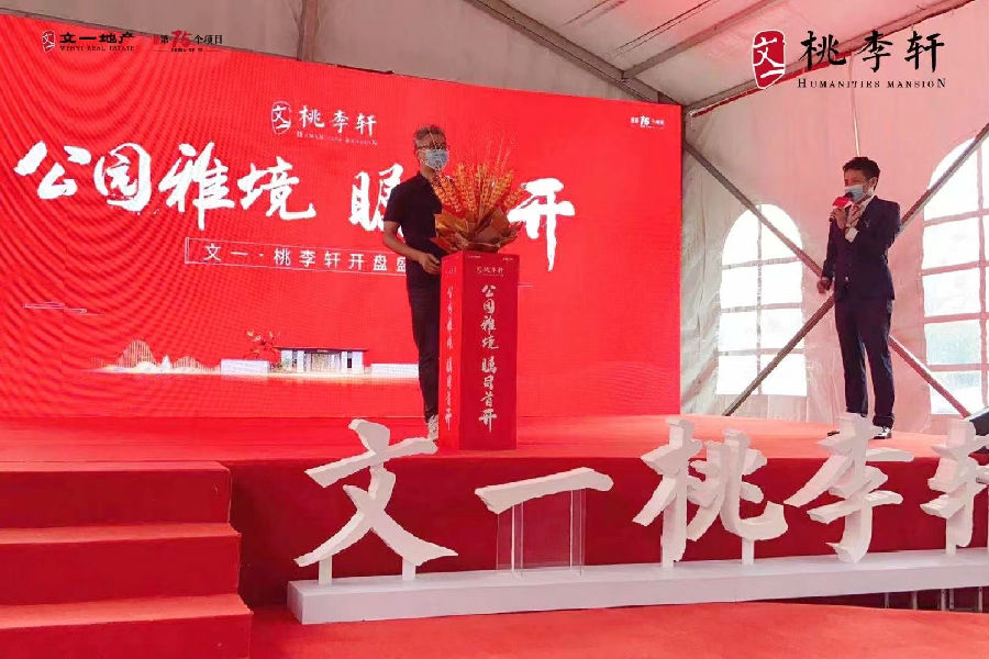 随后,文一庐阳北城置业总经理韦继松手执金色麦穗,插在现场花柱上,预祝文一·桃李轩项目大卖!