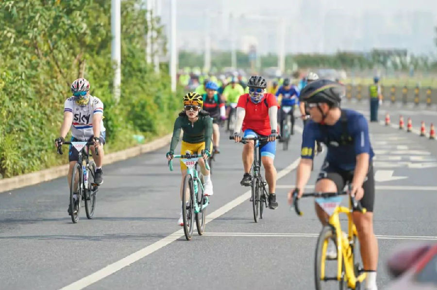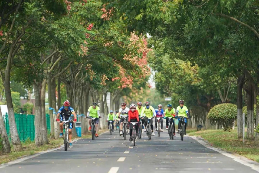 随着鸣枪声起,千人发车,气势恢宏,选手们挥汗如雨的激烈竞技场面与沿途风景融为一体。经过30公里的欢畅骑游,乘着湖岸微风,沿途欣赏环湖16.8公里醉美湖岸线的美丽秋色,千余名选手也在风景沉醉的骑行中陆续抵达比赛终点。至此,2021环巢湖国际骑游大会愉悦了一场风景盛宴。