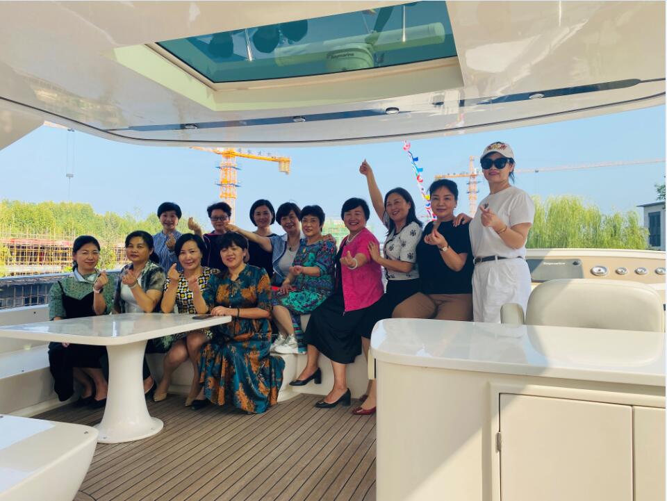 嘉宾参观完院墅,便兴致勃勃来到院墅周边的塘西河岸畔,欣赏这秋日里的湖光山色。 “津门1号”游艇大气磅礴地停泊湖面,嘉宾登上游艇,沐浴和风,闲谈品茗。在参观过程中,当得知未来“津门1号”游艇作为文一塘溪津门业主专属的文化交流平台,后期将承办业主圈层聚会等,都纷纷为文一的服务点赞,同时对未来水街的开街更加期待和充满信心。