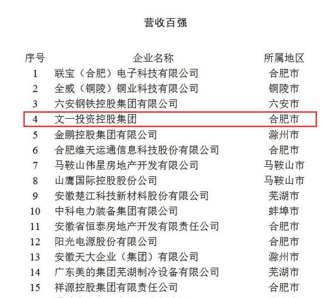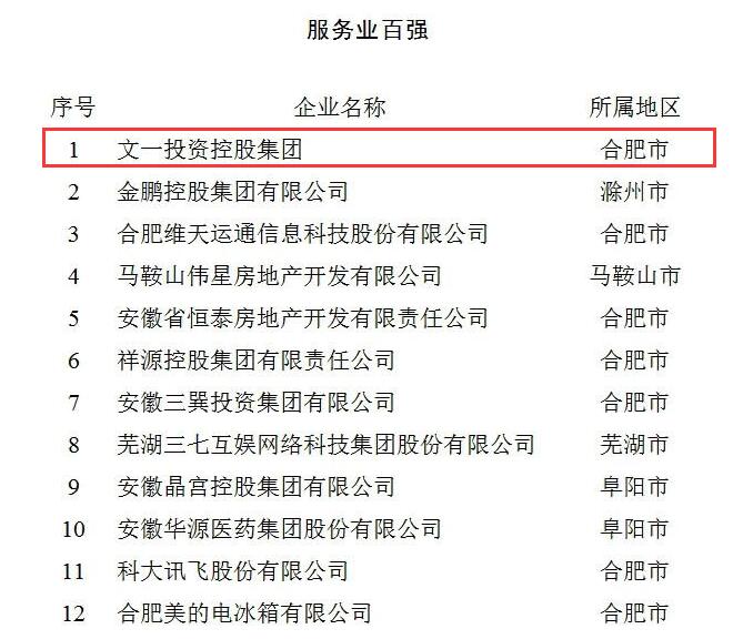 10月21日,2021安徽省民营企业百强发布会在阜阳隆重举行。会上发布了2021安徽省民营企业营收百强、制造业综合百强和服务业百强榜单,文一集团荣获2021安徽省民营企业服务业百强排名第1位、民企营收百强第4位,连续11年蝉联安徽省民营企业10强。