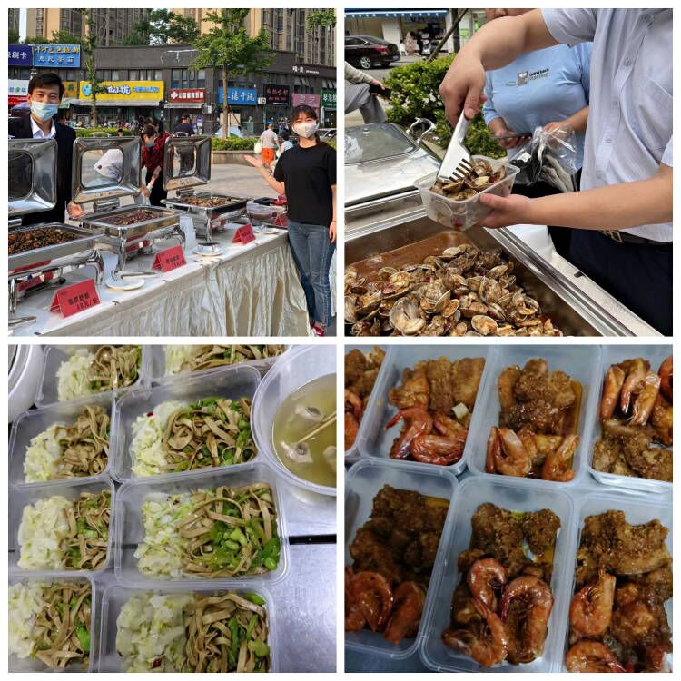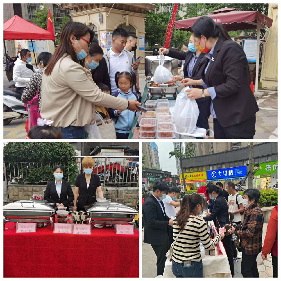 面对居民囤菜困扰和用餐需求,文一戴斯大饭店、一品宴铜陵路店、和平大酒店、肥东宾馆等店积极开展了便民服务,在严格遵守防疫要求的前提下,在酒店门口、社区广场等场所摆摊外卖。价格亲民、分量十足、物美价廉的美食一经推出,便销售火爆。大包子、小龙虾、花甲、猪蹄、凤爪、鸭脖等在摊点都大受欢迎。其中,和平大酒店大包子最抢手,最高日销量近千个;文一戴斯大饭店小龙虾和香辣花甲最受追捧,每天销售上百份;肥东宾馆的柠檬凤爪和卤鸭脖极受欢迎;一品宴铜陵路店香辣凤爪和秘制酱虾人气居高不下,销量都很可观。