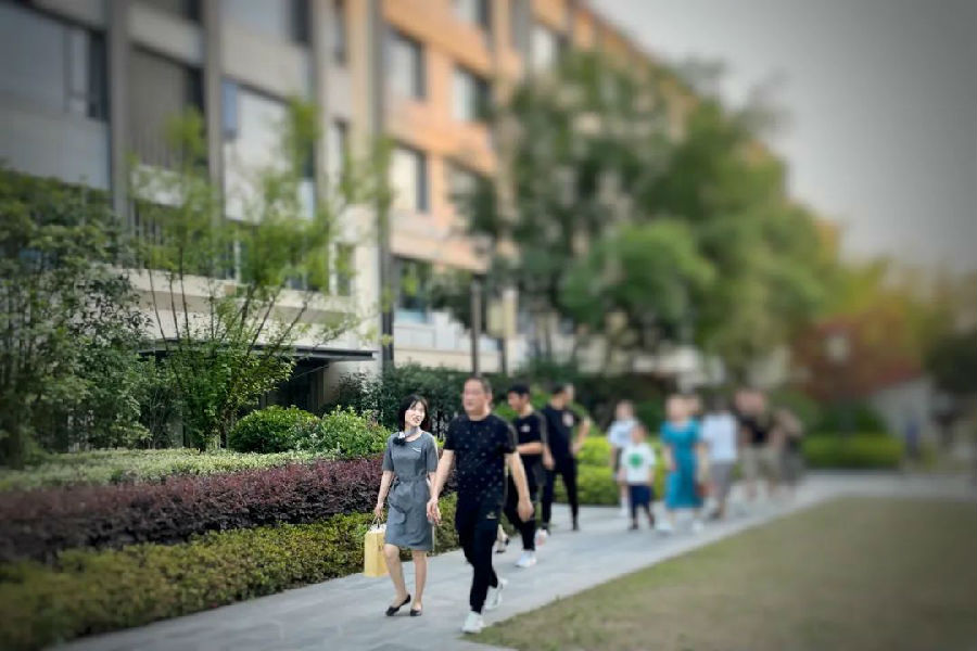 立于沿湖墅区别墅,远眺不远处已然成形的4A级景区商业,古色古香的建筑立面是流淌着的历史文化意蕴,更赋予墅区喧而不闹的烟火气息。在场嘉宾不由产生无限的遐想和向往,感叹着眼前美好的画面,更情不自禁拿起手机记录着这宛若江南的美景。