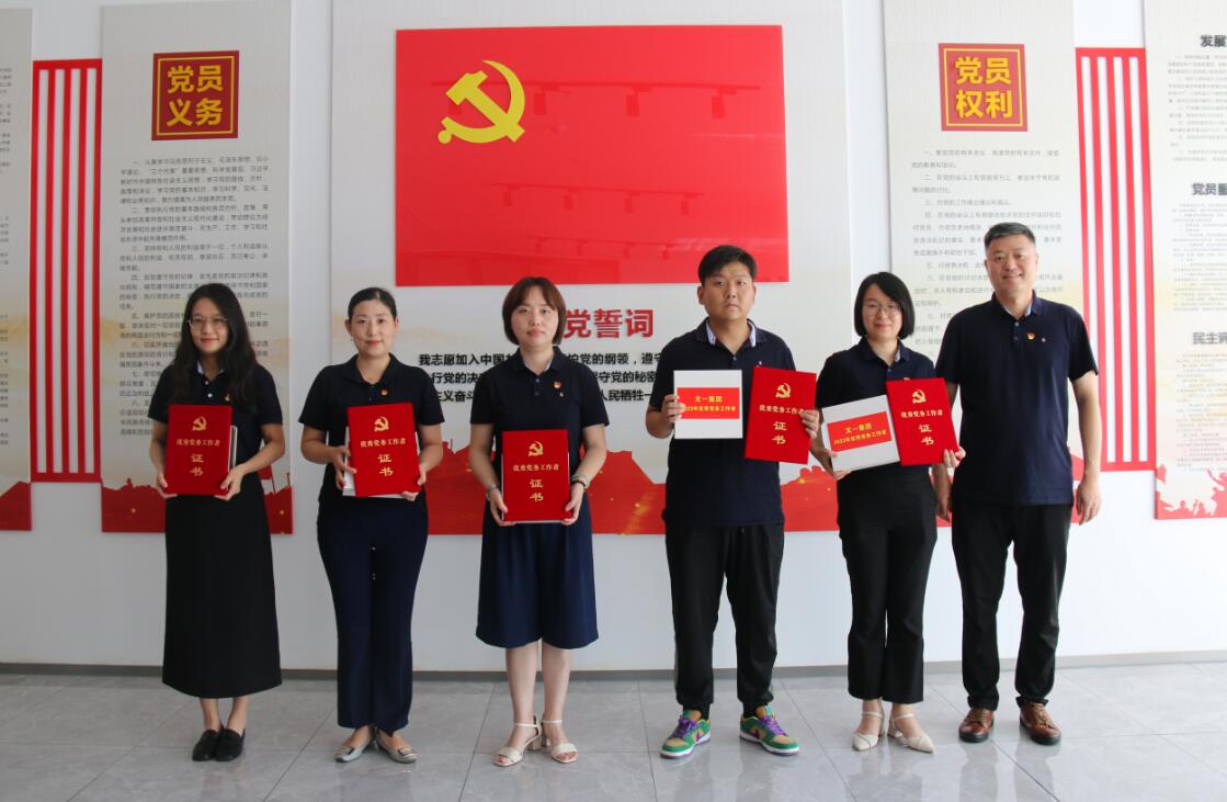 7月1日下午,文一集团党委召开庆祝建党101周年暨“七一”表彰大会,重温入党誓词,表彰先进典型。集团党委书记、副董事长韦勇,集团副总裁陈忠,集团纪委书记、副总裁朱毅,集团党委副书记、副总裁沙先知等集团党委成员,各支部党员、预备党员等50余人参加会议。会议由集团党委副书记沙先知主持。