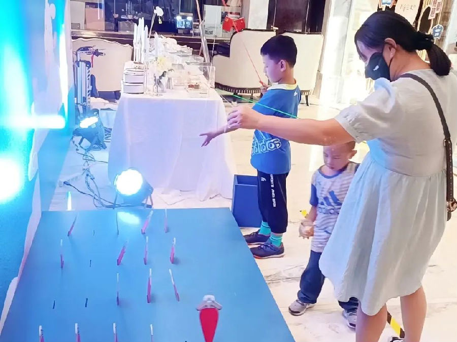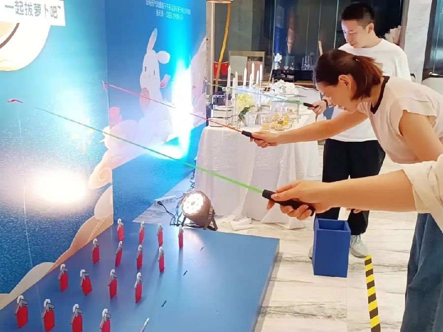 除了尊驾看房服务,现场充满了节日氛围的淘趣活动。众多客户被充满设计感的“月兔拔萝卜”游戏吸引,精致的道具和活泼生动的卡通形象,令大家深陷其中,于是纷纷化作可爱的月兔,拿起钓杆,在阵阵欢声笑语中体验了不一样的欢趣时光。