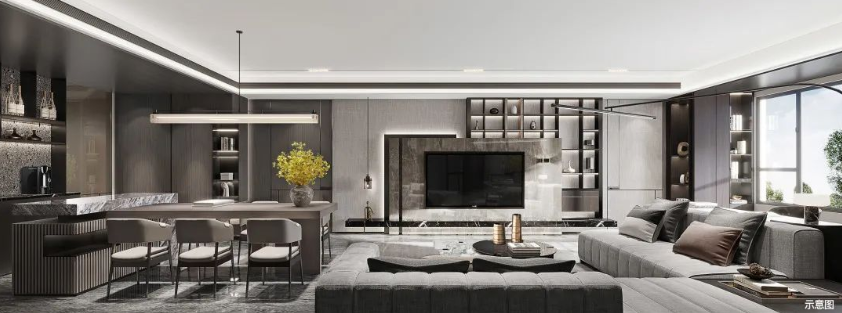 南向3开间,最大约6.8米横厅设计,连接大尺度观景阳台,视觉效果上就很敞亮、大气,更是将视野采光发挥到了极致,也让董铺湖板块的鲜氧遍布整个房子。