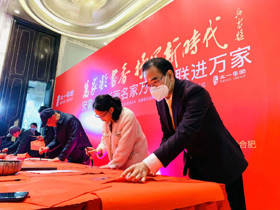 安徽日报报业集团党委委员、副总编辑计永超,安徽省文联原主席、安徽省书法家协会主席吴雪,文一集团副董事长、房地产集团总裁韦勇,文一房地产集团执行总裁、滨江置业公司总裁夏明军等出席启动仪式。本次活动邀请张良勋、张学群、王涛、吴雪、王家琰、周彬、林存安、桂雍、耿立军、王涛、方斌、石海松、杜鹏飞、陈智、戴瑞、李矗等十六位著名书画家倾情书写了十六副精彩春联,共印制十万份春联,公益派送给省内群众。