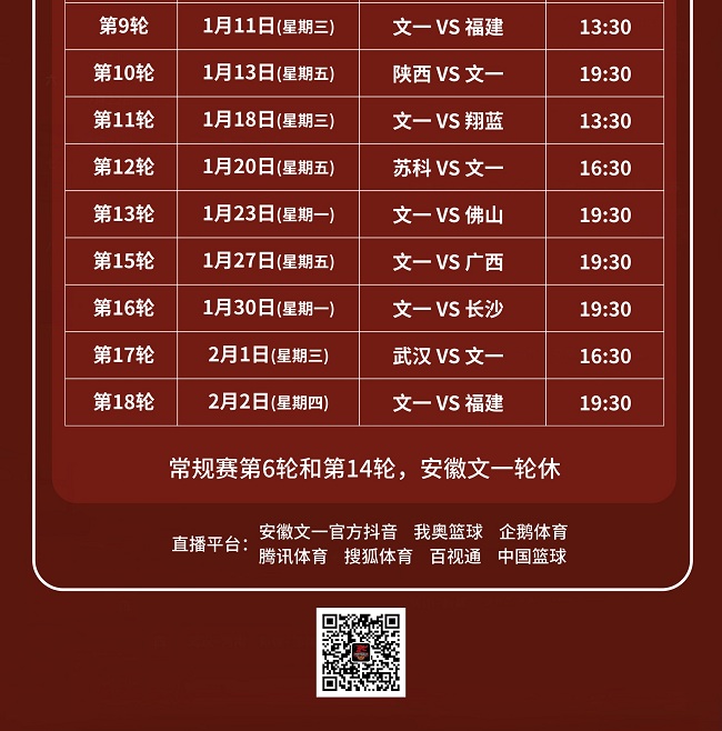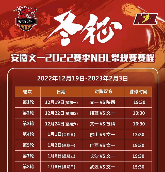 【文一男篮】安徽文一2022赛季NBL常规赛赛程