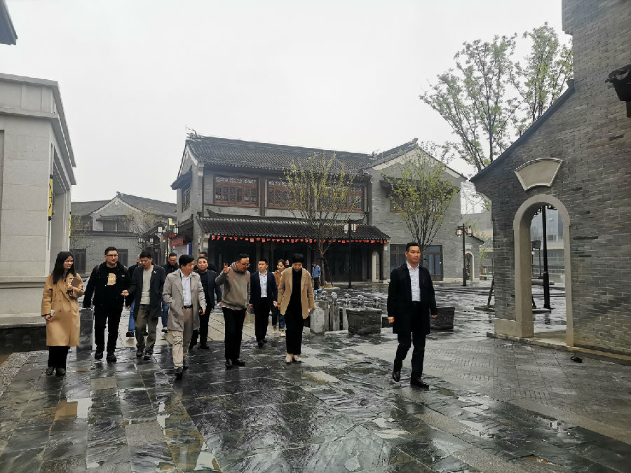 3月21日下午,合肥市包河区委常委、宣传部长赵晓晖,区文旅局副局长李元新率企业家代表团一行莅临文一·塘溪津门水街调研考察。文一地产集团执行总裁、滨江置业公司总经理夏明军,集团文旅总监、文化体育和旅游发展部总经理廖胜利,塘溪津门文化旅游有限公司总经理孙韬全程陪同。