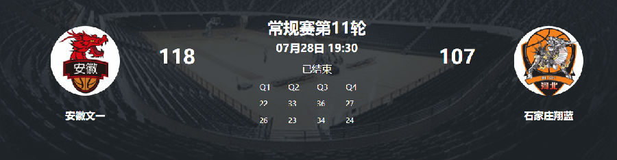 7月28日晚,安徽文一在常规赛上半程收官战中主场对阵石家庄翔蓝。新援马库斯·邓蒙迎来加盟后的首秀。正是凭借着这位持球大核狂砍48分和7次助攻的完美表现,文一男篮以118-107力擒对手,收获四连胜。