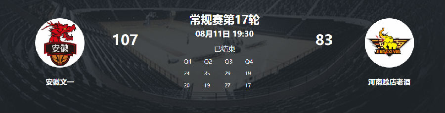 8月13日本周日晚七点半,安徽文一将在常规赛最后一个主场比赛中对阵陕西信达,榜首大战即将上演,敬请期待。