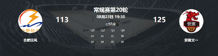 8月23日,NBL常规赛第20轮迎来安徽德比二番战,文一男篮客场对阵合肥狂风。本场比赛,文一男篮遭遇对方的顽强反扑,但凭借着末节达卡里和蒋淯安的联手发力,文一男篮最终以125-113力擒对手,常规赛双杀合肥狂风!