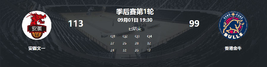 9月1日晚,NBL季后赛烽火燃起,安徽文一在季后赛首轮遭遇香港金牛。在前三节比分焦灼的局面下,文一男篮末节从防守端做起,邓蒙、蒋淯安和达卡里相继发力,最终在主场以113-99力擒香港金牛,在三局两胜制的季后赛首轮中以总比分1-0领先对方,距离晋级半决赛仅一步之遥。