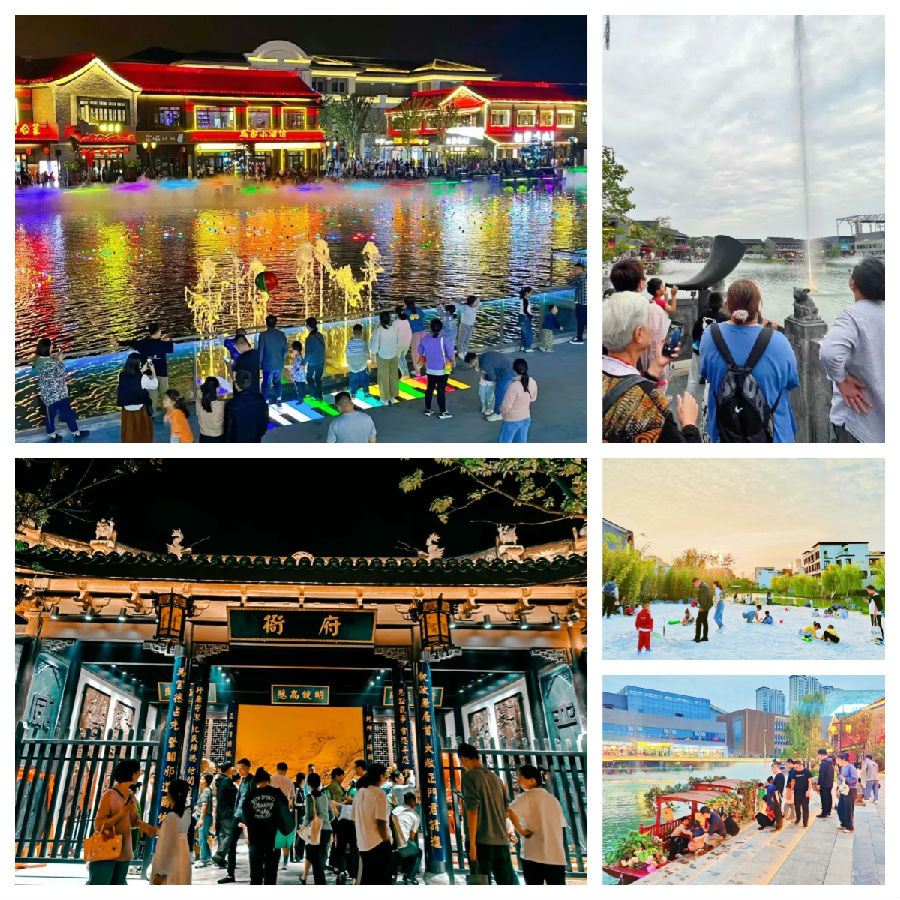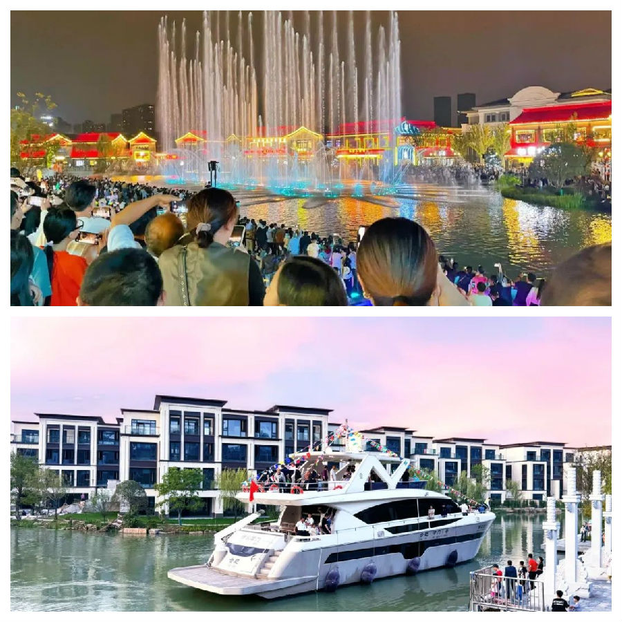在这座15万方文旅街区里,有很多值得打卡赏玩的景点等待着热爱生活的人们。万平水秀剧场、观光游艇、脚踏琴键操控音乐水秀、网红解压喊泉、江南浪漫乌篷船、孩童乐园白沙滩等等早已成为人们竞相打卡的网红景点。水街宋式衙府也在国庆期间正式亮相。大堂上挂“明镜高悬”,正楷体金字“正本清源眼前皆赤子,乾坤夕阳头上有青天”,鸣冤鼓,列队衙役雕像,为游客生动形象地复刻了大宋衙府的威仪气场,仿佛穿越千年,走入了包青天伸张正义的神圣衙府。津门水街将万千风雅汇聚一座城,为合肥造了一座现代汴梁城。