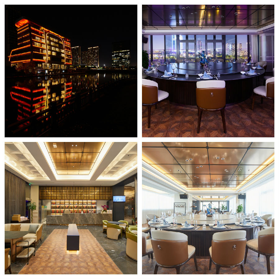 一品宴上海店总面积约5000㎡,坐落于春申湖畔,战斗河边,公园环绕,独特的帆船造型,营造出“店在景中,景在店中”的诗意环境。酒店拥有20间湖景包厢、可容纳240人的宴会厅、临湖港式茶餐厅以及闲逸的户外星空屋。顶楼600㎡VIP 包房,可同时满足品茗、棋牌、用餐、轰趴、KTV等场景需求。文一上海总部大厦与酒店相傍而立,共23层,总高度逾百米,建筑面积约3.3万㎡,已于今年5月喜封金顶,计划于2024年正式落成。