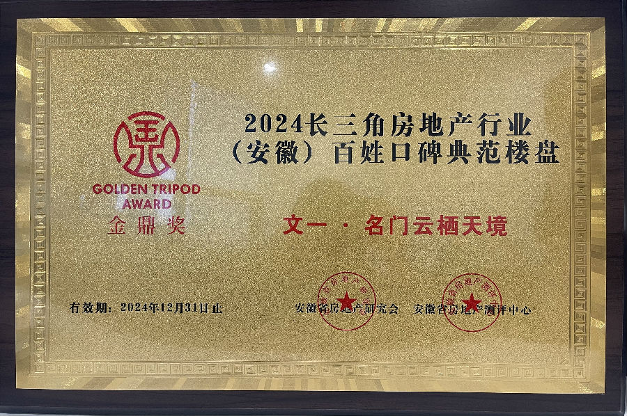 12月15日,2024安徽省房地产行业50强暨第九届“金鼎奖”发布会在合肥举行。文一地产荣膺2024安徽房地产开发企业综合实力10强,连续九年获此殊荣。文一·名门云栖天境荣获“2024长三角房地产行业(安徽)百姓口碑典范楼盘”称号。